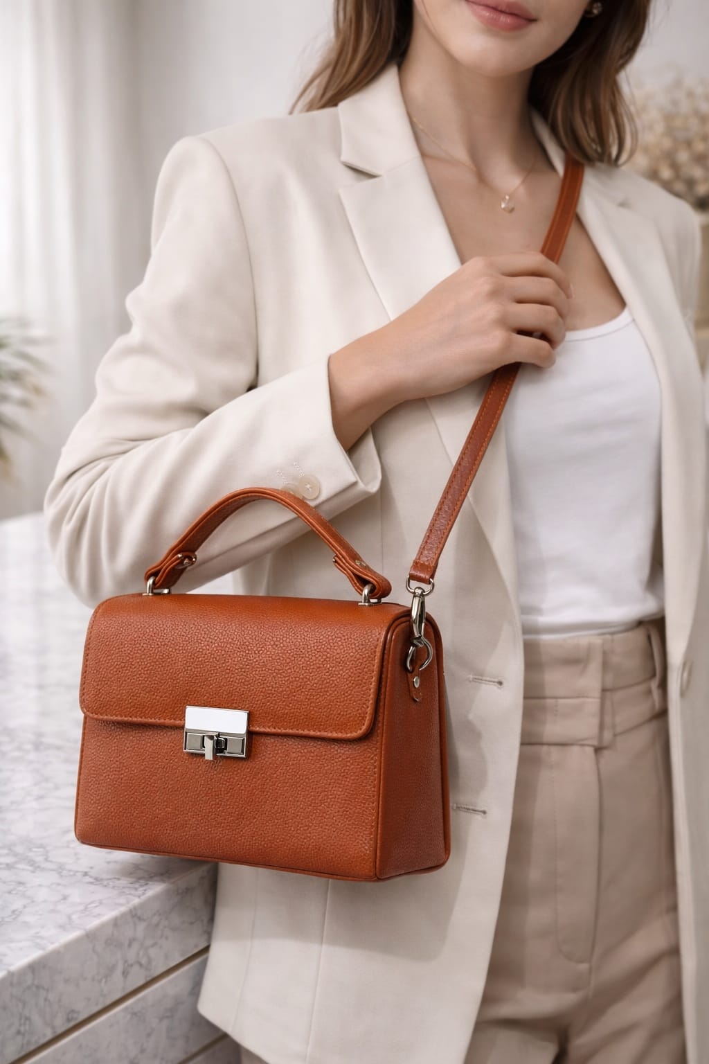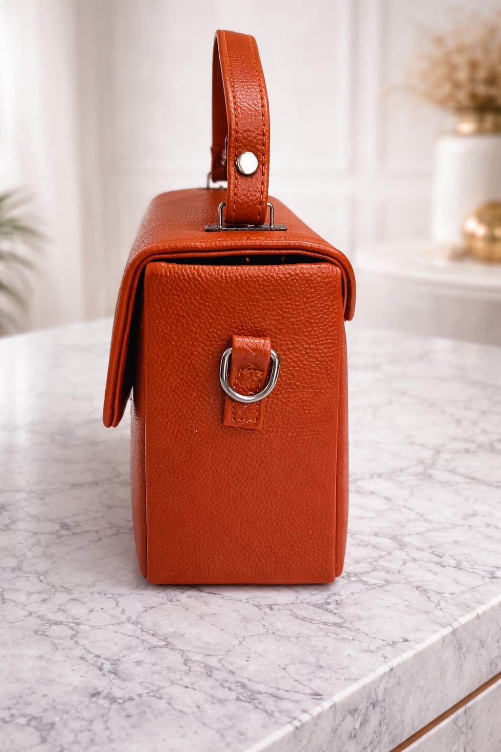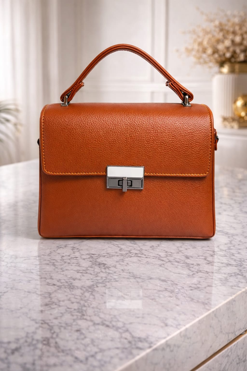 Be the first to review “Terracotta Luxe Textured Vegan Leather Structured Top Handle Satchel Bag with Sleek Metal Lock Closure & Detachable Adjustable Shoulder Strap”