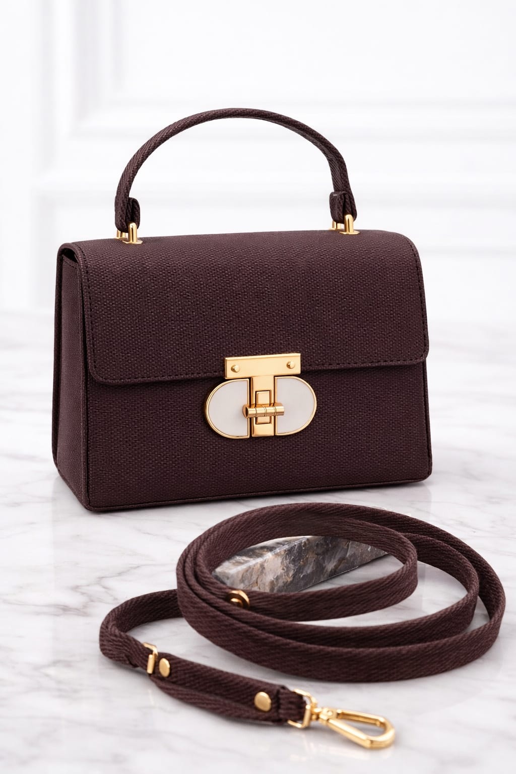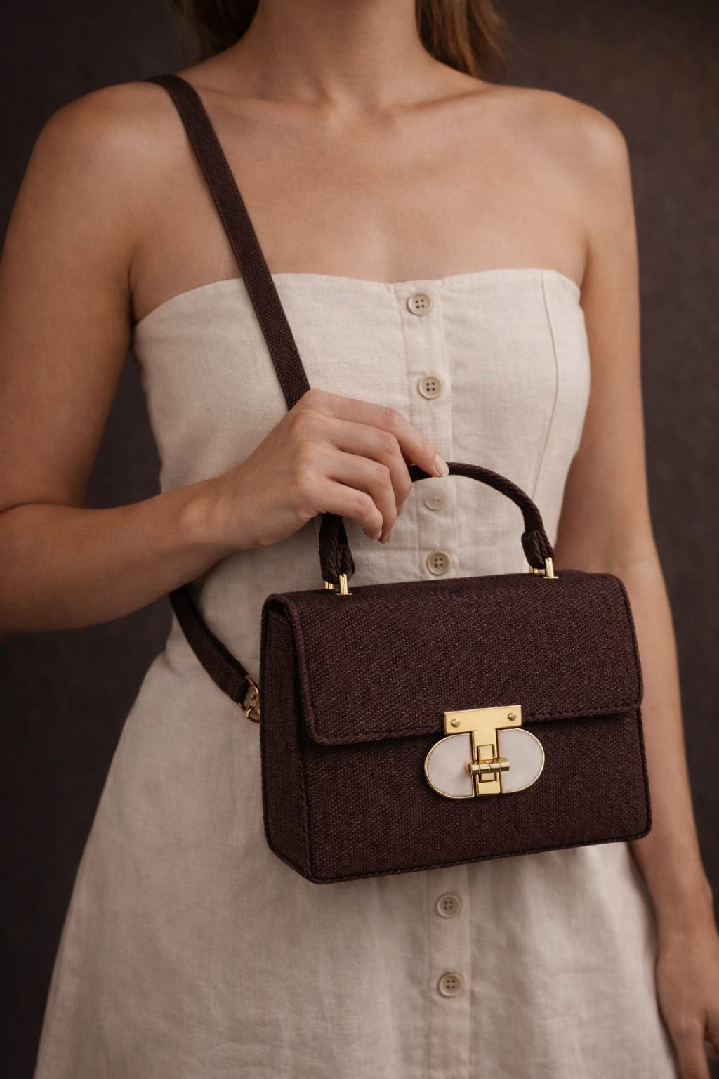 • Hardware: Premium gold-tone metal fittings